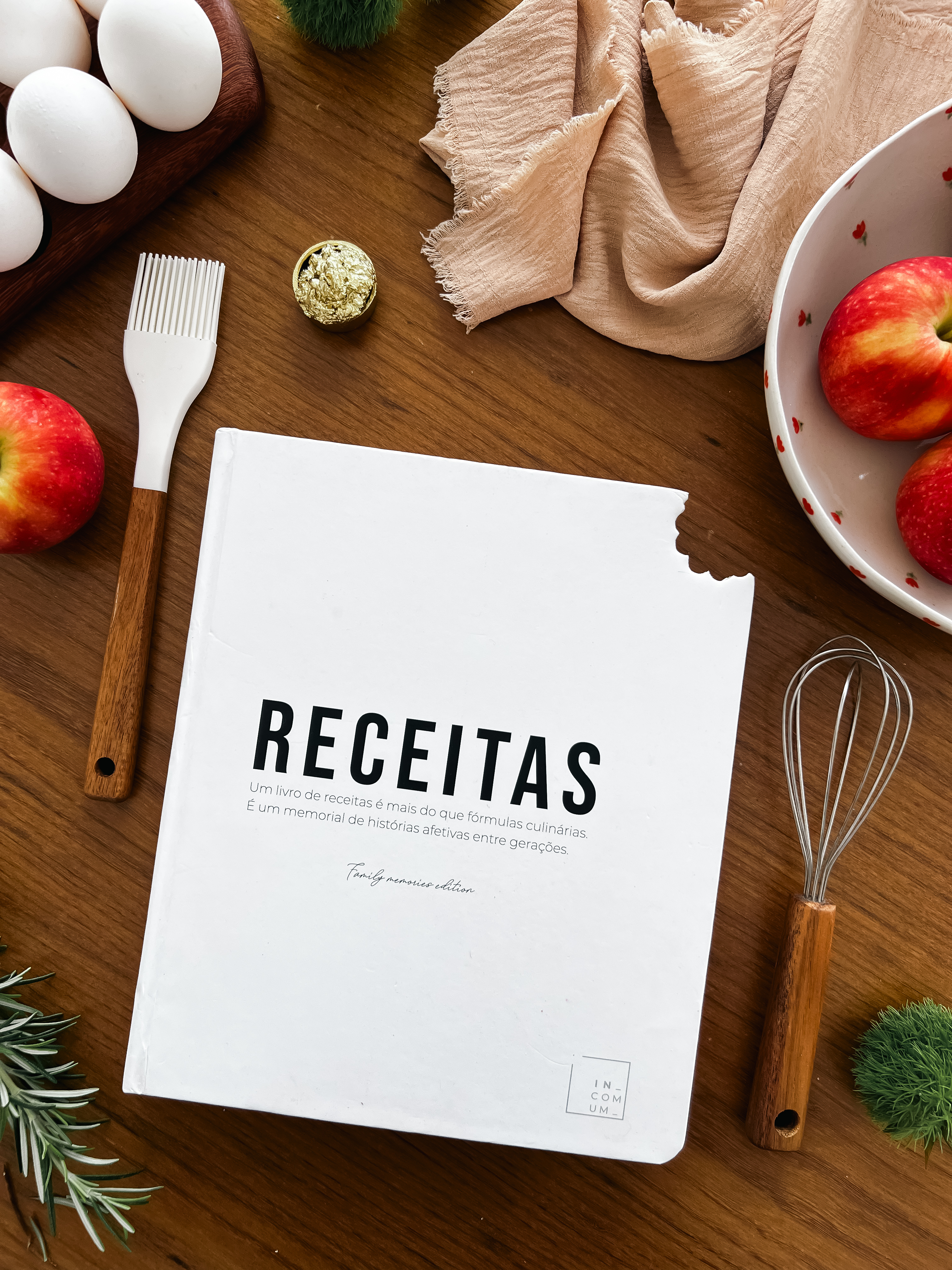 Entre receitas, risadas e lembranças, nasce o Diário de Receitas IN_COMUM — feito para transformar o ato de cozinhar em um ritual de afeto. Porque os sabores passam, mas as memórias ficam.